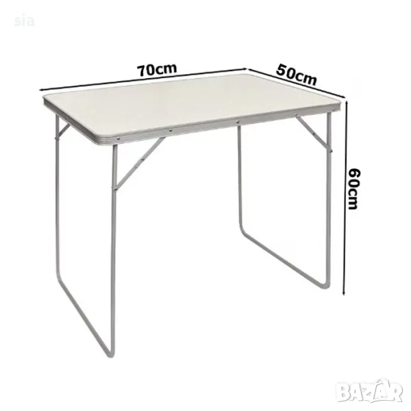 Компактни размери – разгънатият плот е с размери 50 см дължина, 70 см ширина и 60 см височина, идеален за използване на открито.