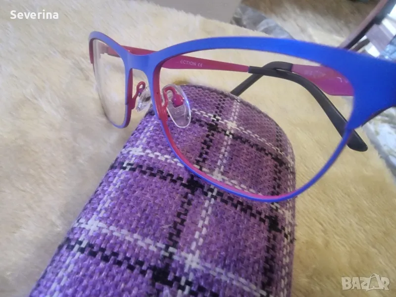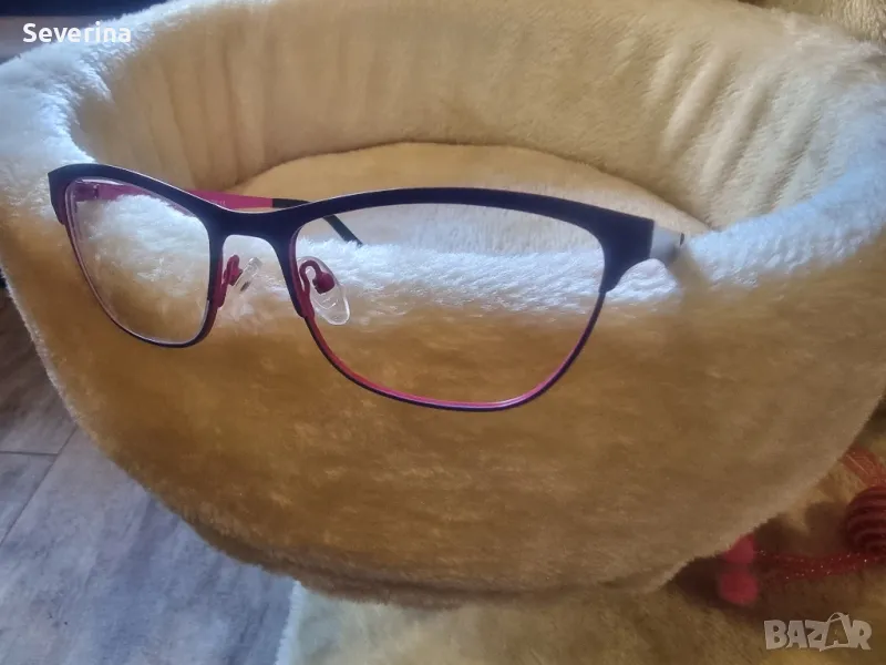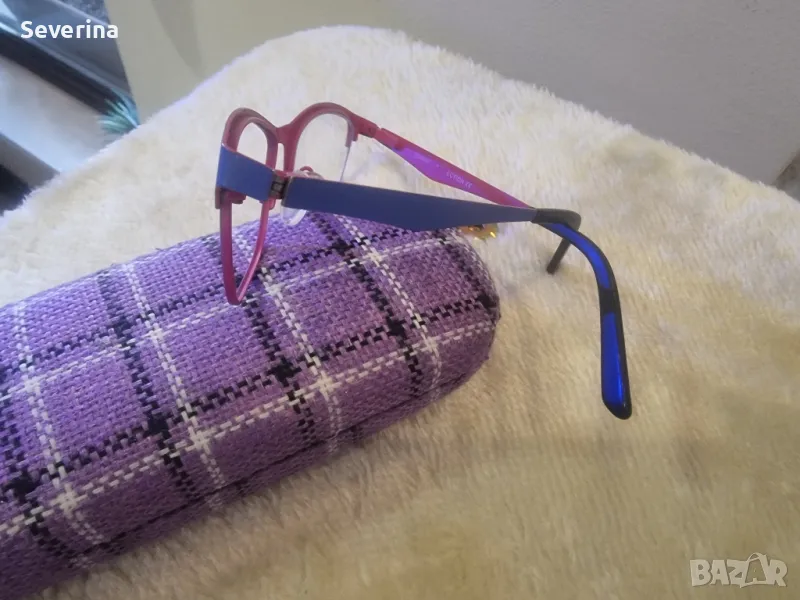 Продавам диоптрични рамки за очила в два цвята,отвън е синьо лилав,отвътре розов. Купувани са за дъщеря ми 10 години,много малко време са носени, без забележки!Подарък твърд калъф!