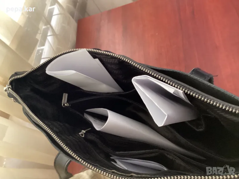 Нова,оригинална черна чанта размер 33/30/12 см с четири външни и 4 вътрешни джоба,с вътрешно отделение с цип и допълнителна дълга дръжка