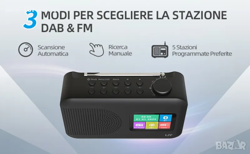 DAB Plus цифрово радио с будилник с цветен дисплей и Bluetooth LFF