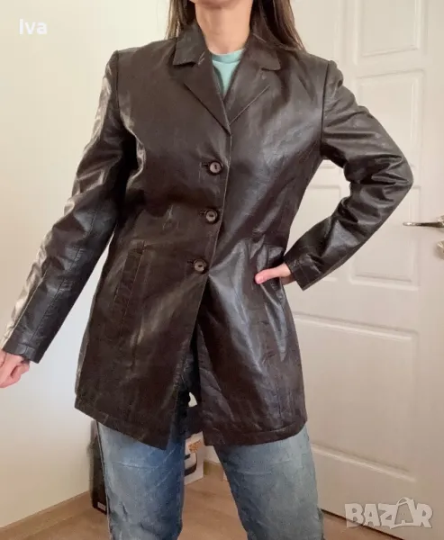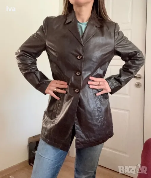 Дамско яке естествена кожа м л размер тъмно кафяво zaffers