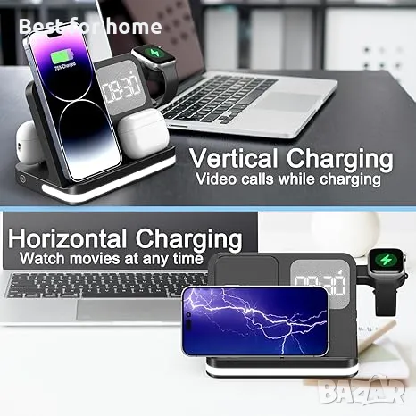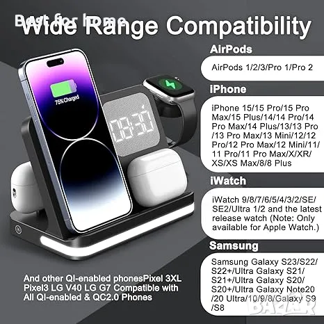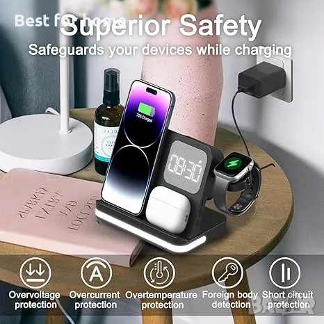 Зарядна станция за множество устройства, съвместима с iPhone ,смартфони, слушалки, смарт часовници