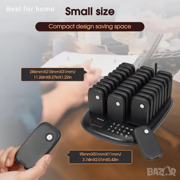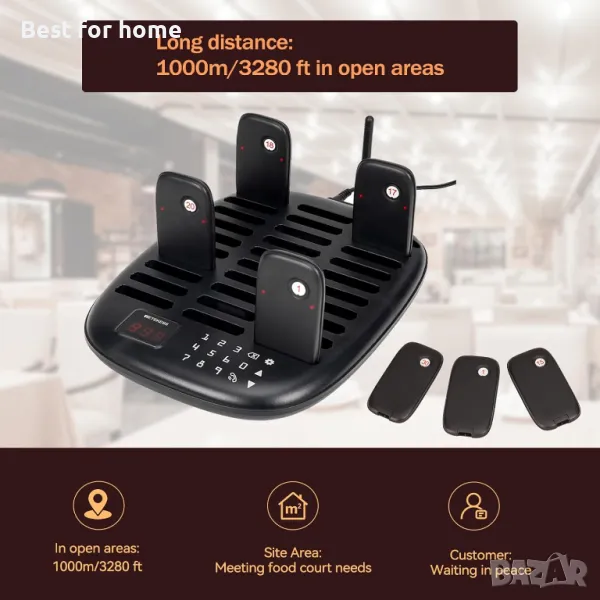 Дълги разстояния; пейджър системата в ресторанта работи на разстояние до 1000 м/3280 фута на открити пространства; може да накара клиентите да чакат в колата