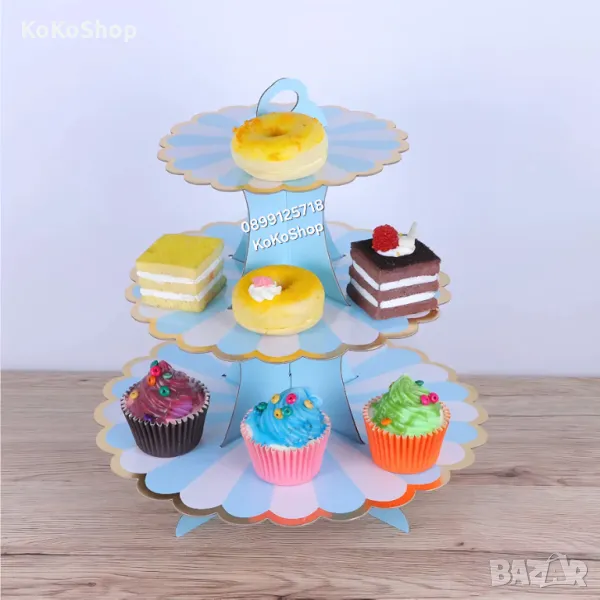 Триетажна поставка за кексчета и десерти/Парти поставка за кексчета/Триетажна поставка за мъфини