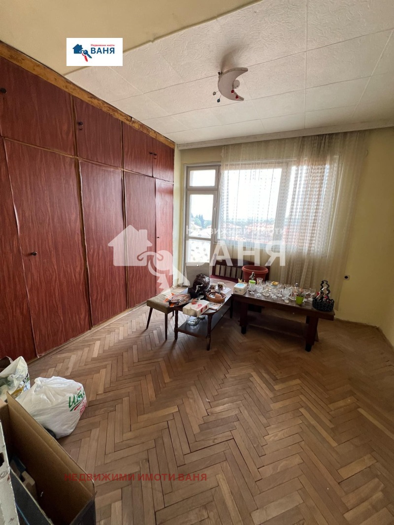 Недвижими имоти ВАНЯ предлага тристаен тухлен апартамент в град Карлово. Жилището е с площ от 101кв.м на четвърти жилищен етаж със изложение север юг . Разпределението е две спални хол, кухня, баня, тоалетна и три тераси. Към жилището има таванско помещение с площ от 20 кв.м, изба 16 кв.м. и гараж 21кв.м.