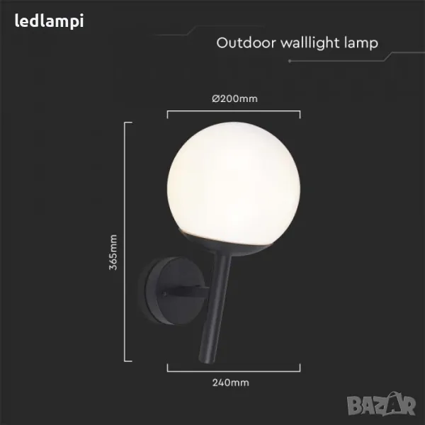 Градински Аплик Е27 Черен - ПРОМОЦИЯ