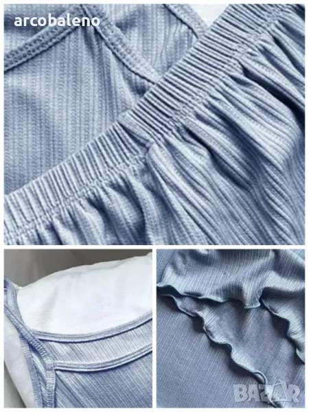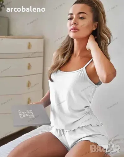 Дамски комплект пижама с горнище с ластик и къси панталонки с еластична талия, 5цвята