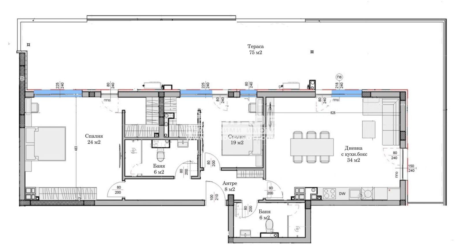 Предлагаме Ви просторен тристаен апартамент с перфектно разпределение в нова модерна сграда със собствен стил, изчистена визия, проектирана така, че да създаде максимален комфорт и уют за живеене. Проектът предвижда нискоетажно жилищно строителство, в съответна близост до основни комуникации в един от най-бързо развиващите се райони. Жилището се състои от ъглова дневна с кухненска част 29кв.м., две спални: родителска 24кв.м. с дрешник, детска с дрешник 19кв.м., две големи бани с тоалетна и една панорамна тераса, с достъп от всички стаи. Сградата се изпълнява от една от водещите строителни компании, наложила се на пазара с множество готови обекти, изпълнени с изключително високо качество и прецизност. Възможност за разсрочено плащане в рамките на строителството , както и възможност за закупуване чрез Банков Кредит с изключително изгодни условия за клиенти на агенция Кондор !!! СВОБОДНИ ПОДЗЕМНИ ГАРАЖИ и ПАРКОМЕСТА !!!
