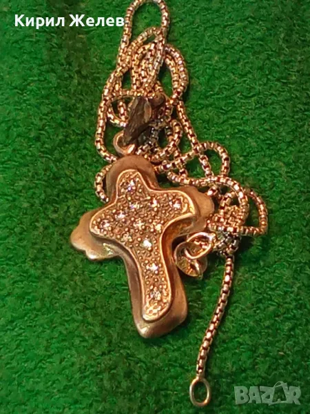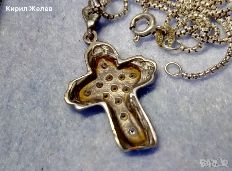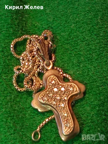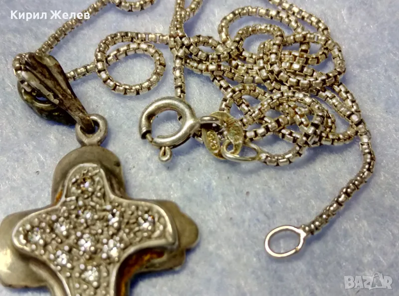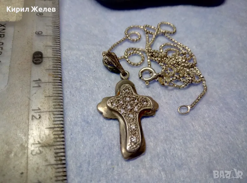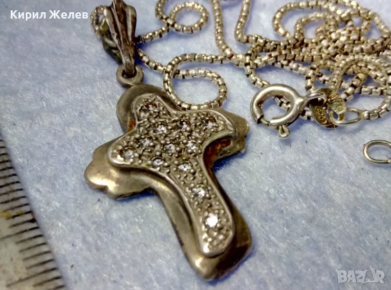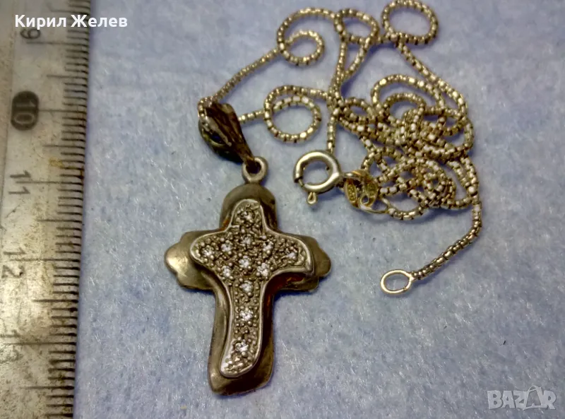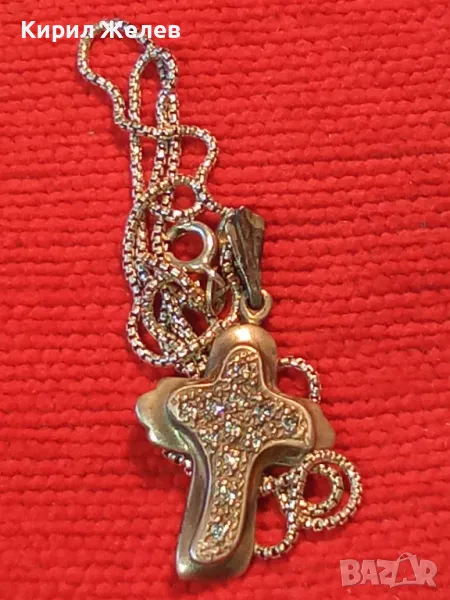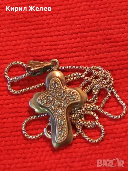 СКЪПОЦЕНЕН АРТ КРЪСТ с НЕЖНА СРЕБЪРНА ВЕРИЖКА СРЕБРО 925 с БЯЛА ПОЗЛАТА и ИСКРЯЩИ ЦИРКОНИ 29167