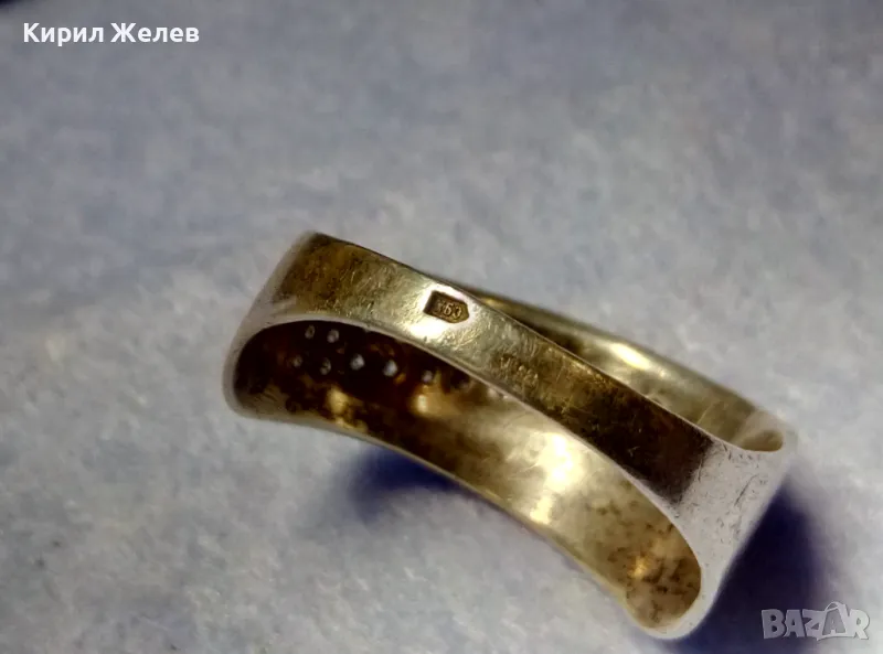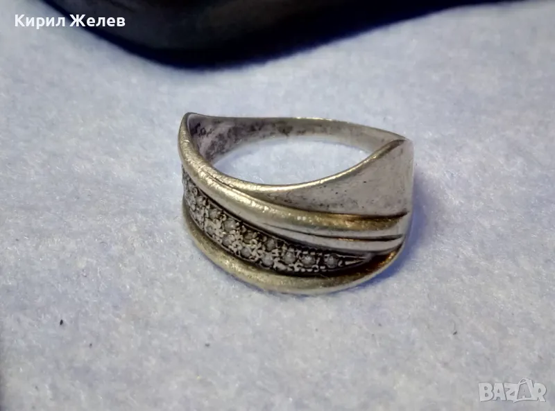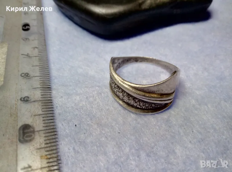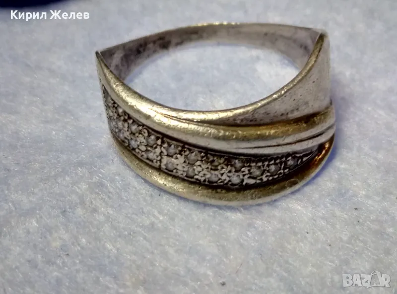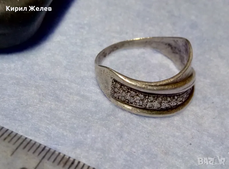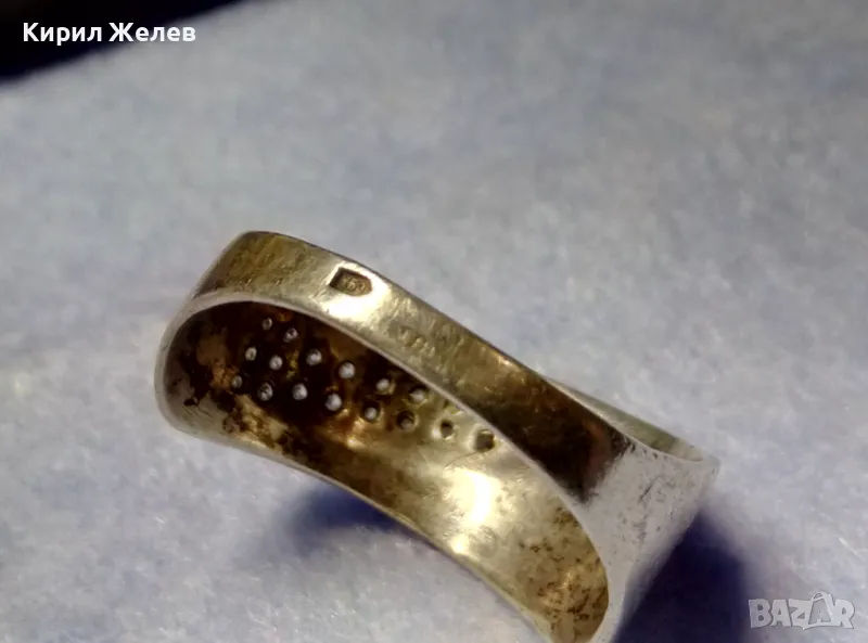 СТАР РУСКИ СРЕБЪРЕН ПРЪСТЕН СРЕБРО 925 с 2ри ЩЕМПЕЛ ХБО ИНКРУСТИРАН с БЛЕСТЯЩИ ЦИРКОНИ 47527