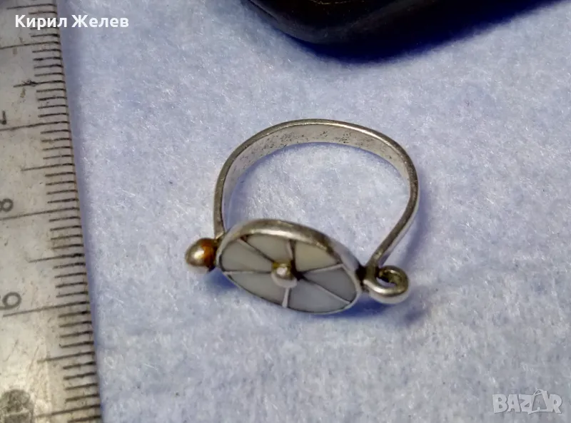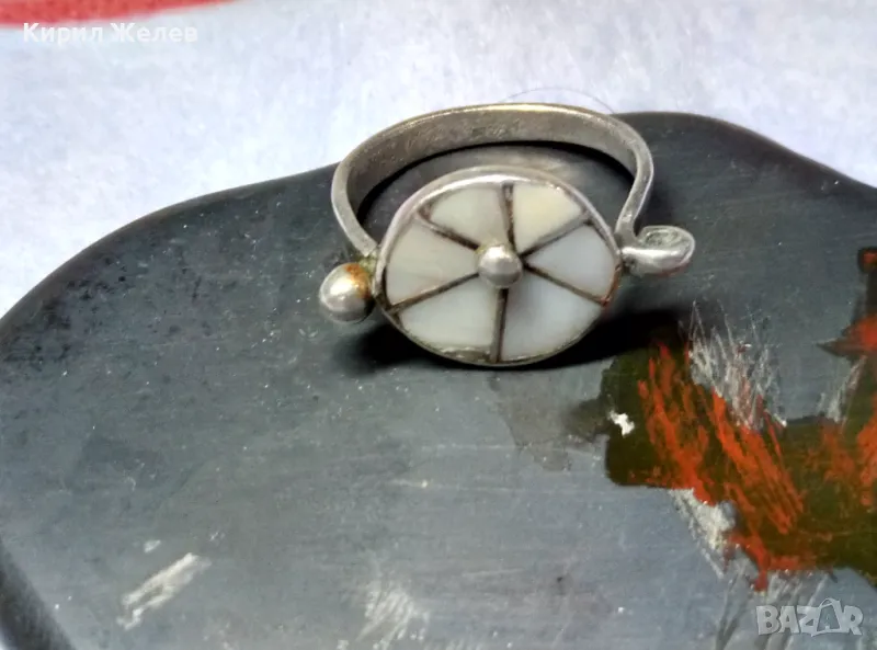 СТАР РЕТРО АРТ СЕДЕФЕН СРЕБЪРЕН ПРЪСТЕН СРЕБРО ВИСОКА ПРОБА с РЪЧНО ИНКРУСТИРАН СЕДЕФ 47160