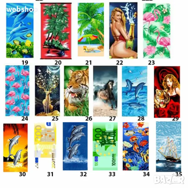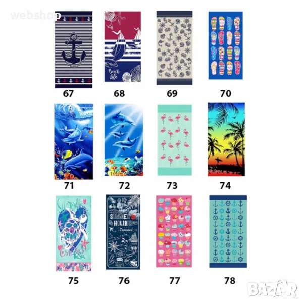 Дизайни: 83 различни модела – включително морски, тропически, сладкарски, спортни, детски и абстрактни мотиви;