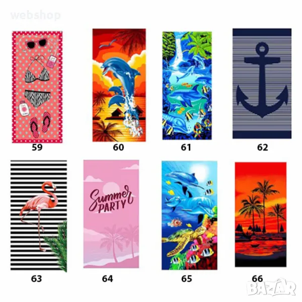 Плажна кърпа, Хавлия за басейн 75х150 см, микрофибър, многоцветна, тегло 260 гр.