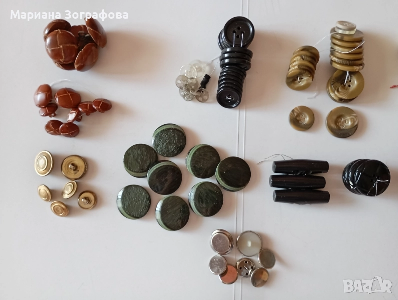 - 5 цилиндърчета, които се поставят м/у копчетата и плата откъм лицевата част на дрехата, за да стоят по-красиво и не се късат лесно конците. Цена Лот - 13.00 лв.