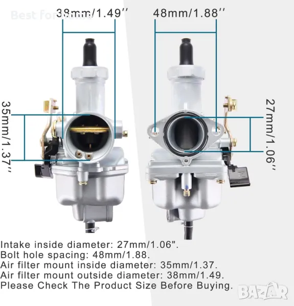Карбуратор GOOFIT PZ27 за XR100 CB125 XL125 CM185 ATC185 ATC200 TRX250 ATV Pit Bike
