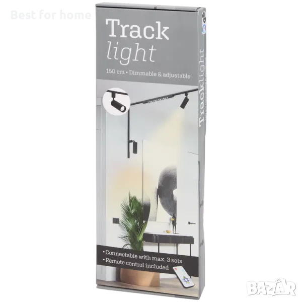Монтирайте тази стилна лампа на стената или тавана и настройте прожекторите точно там, където ви е необходимо. Благодарение на модерното и индустриално покритие, тази релсова лампа се вписва идеално във всяка стая в дома ви, където е добре дошла допълнителна светлина. Освен това, можете лесно да регулирате интензитета на светлината според вашите предпочитания с включеното дистанционно управление.