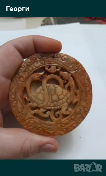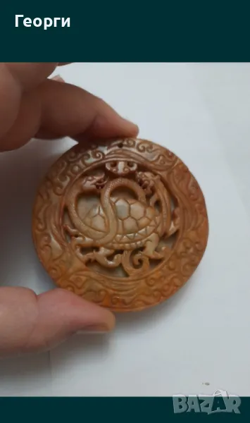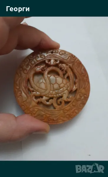 Много красив и чисто нов гравиран камък.Размери 80 на 10 милиметра.Камъка изобразява костенурка и дракон.С дупка за окачване.
