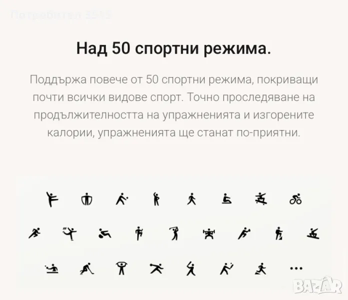 Над 50 спортни режима. Поддържа повече от 50 спортни режима, покриващи почти всички видове спорт. Точно проследяване на продължителността на упражненията и изгорените калории, упражненията ще станат по-приятни.