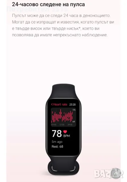 24-часово следене на пулса. Пулсът може да се следи 24 часа в денонощието. Могат да се изпращат и известия, когато пулсът ви е твърде висок или твърде нисък, което ви позволява да имате непрекъснато наблюдение.