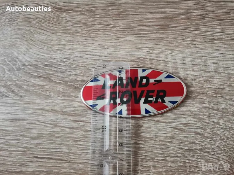нова емблема за всички модели на Land Rover в цветовете на Union Jack. Размерите са дадени на снимките 8.6см на 4.4см.