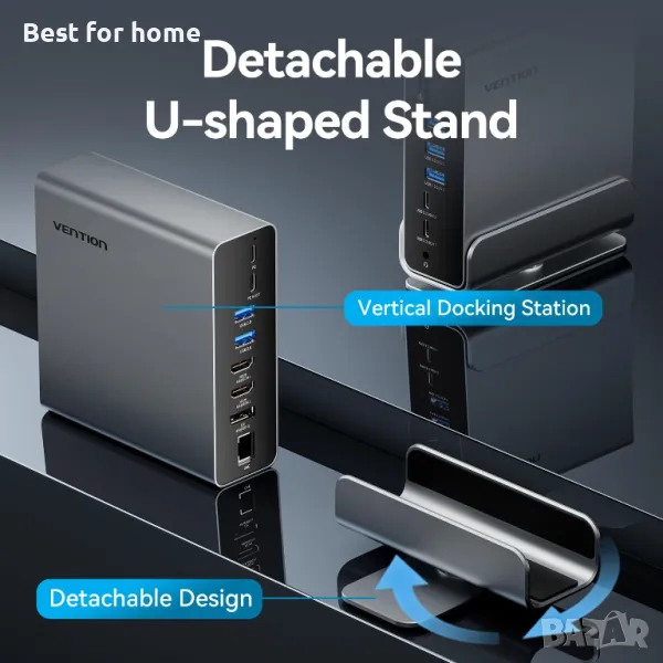 15-в-1 USB-C ДОКИНГ СТАНЦИЯ: Докинг станцията VENTION 15-в-1 USB-C е най-добрият разширителен хъб за лаптоп, включващ 2 HDMI 4K-60Hz порта, 1 DP 4K-60Hz порт, 10Gbps USB-C портове, USB-A 10Gbps, USB 3.0, USB 2.0, 100W ower Delivery (PD) порт, 0.0 аудио жак. 138 инча, четец за SD/TF карти, RJ45 Gigabit Ethernet и PC host порт, за да отговори на всички ваши нужди от свързаност.