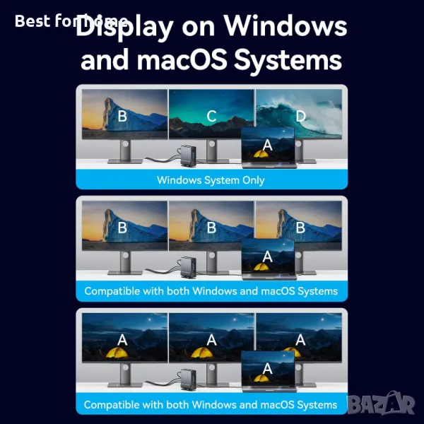 ПОДДРЪЖКА НА ДВОЙНИ/ТРОЙНИ МОНИТОРИ: Разширете дисплея на вашия лаптоп с два или три монитора, поддържащи 2x4K-30Hz (HDMI) или 3 монитора при 1080P-60Hz чрез HDMI и DP портове. Идеален за многозадачност, продуктивност, игри или стрийминг на Windows система.