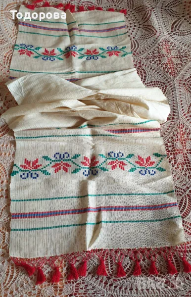 Автентичен кенарен месал.Неупотребуван .Дължина с ресните .- 220 см.Ширина - 45 см.