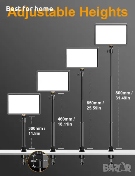 【Компактна настолна лампа за ключове】Със здрава метална C-образна скоба (подходяща за дебелина 0-50 мм), регулируема (30 см - 80 см) и стабилна стойка, свободно въртяща се на 360° под всякакъв ъгъл, стрийминг лампата VIJIM винаги ще поддържа работното ви място подредено и перфектно.