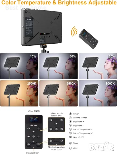 VIJIM K20 Key Light е много подходящ за предавания на живо, видео, студио, натюрморти, портрети, сватби, макро, креативни кратки видеоклипове, стрийминг медии, осветление за интервюта и др. Оборудван с дистанционно управление, яркостта на светлините може да се регулира по групи. Богат на функции, лесен за работа.