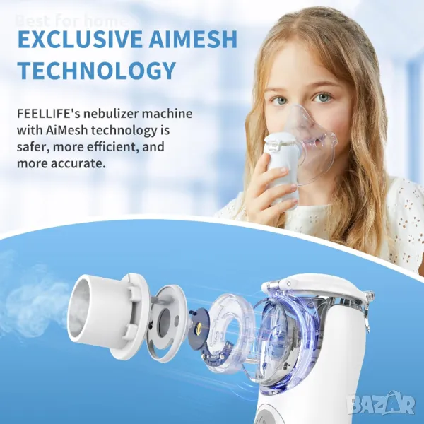 Инхалатор FEELLIFE Детски бебешки инхалатор, инхалатор за възрастни, небулизатор за деца, тих инхалатор под 25 dB, преносим инхалатор, ефективен при респираторни заболявания