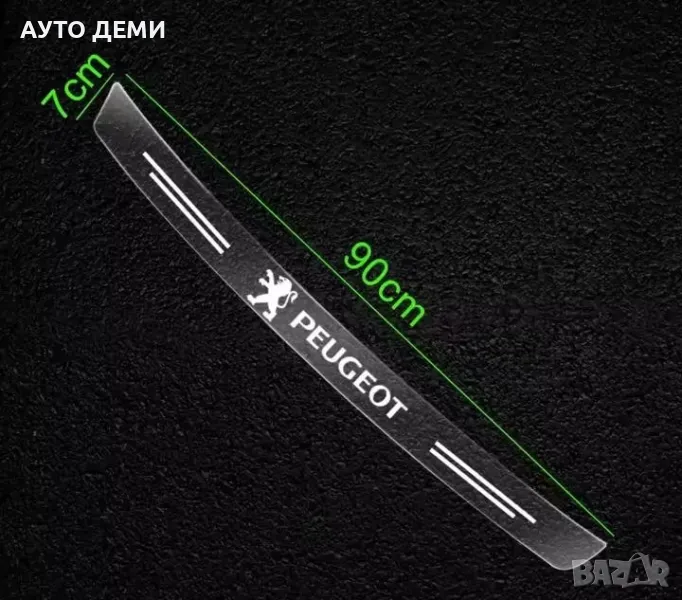 1 брой за задна броня 90 см на 7 см с бяло лого на Пежо - 9 лв,с гланц - 12 лв.