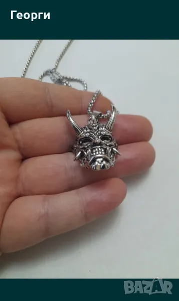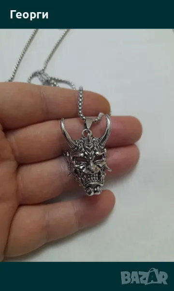 Много красиво и чисто ново колие от метал.Дължина на синджира 60 сантиметра.Перфекно.Със сребристи рога.