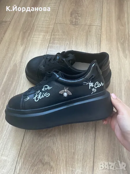 Обувките са чисто нови, естествена кожа, черни, произведени в Италия. На платформа 5 см и декоративни акценти по обувките. Отговарят на 37ми номер.