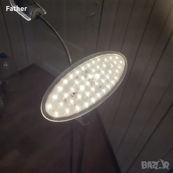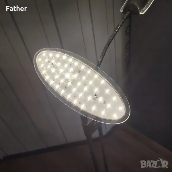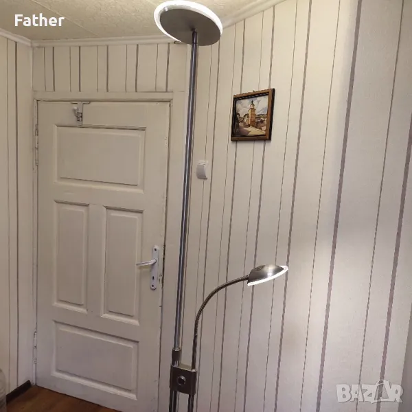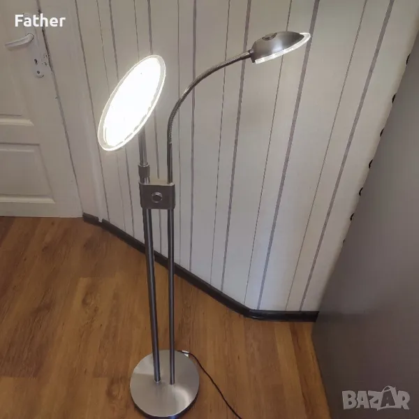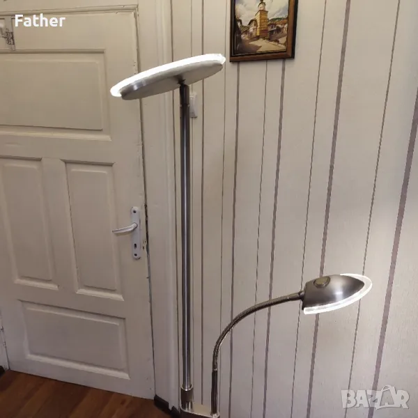 Луксозен и много качествен лампион комбиниран с нощна лампа. Солидно изработен от неръждаема стомана. голямото тяло се регулира в доста голям диапазон на височина а нощната лампа е подвижна във всички посоки. Всяко осветително тяло се включва с отделен бутон. Всички диоди работят и светят много добре. Много красив и удобен същевременно.