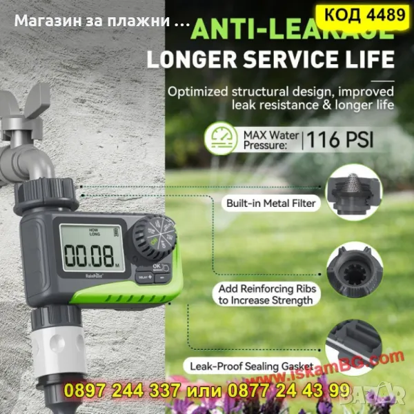 Забравете за ръчното поливане и спестете време, усилия и вода с електронния таймер RainPoint HCT-322! Перфектен за градини, тревни площи, оранжерии и саксии – дори когато сте в отпуск! 🌞
