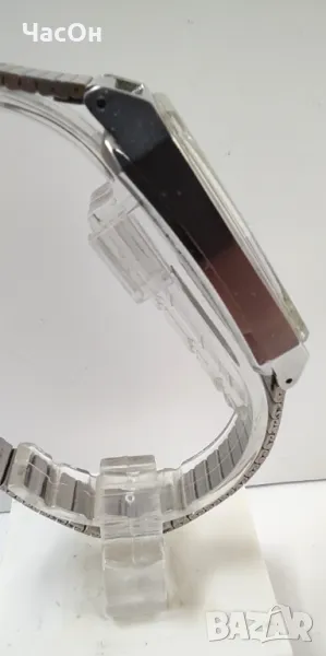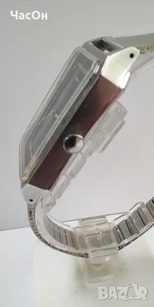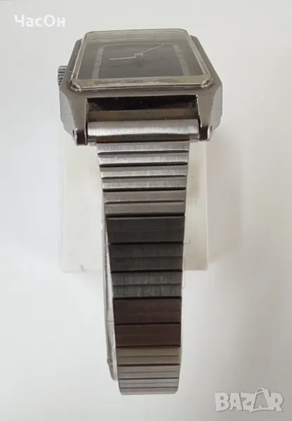 Запазена каса, запазен циферблат, чисто оригинално стъкло. Мно-о-ого леки, почти незабележими следи от употреба. Касата е стоманена, стрелките – сребристи, маркерите за час – нанесени върху сребрист релефен правоъгълник върху циферблата с цвят графит, което го прави много ефектен.