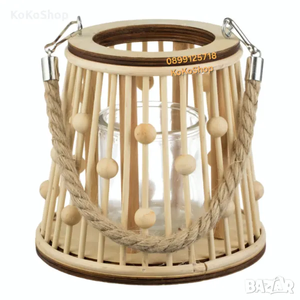 Добавете уют и елегантност с дървения фенер – идеален за свещи или LED осветление. Подходящ за дома, градината и специални събития.