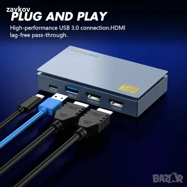 4K карта за заснемане: Проектирана с ултрависокопроизводителен чип, максималната входна резолюция може да достигне 4K 60Hz, а максималната резолюция на заснемане е до 4K 30Hz. USB 3.0 поддържа едновременно извеждане на данни от 2 устройства и 3 дисплея на устройства.