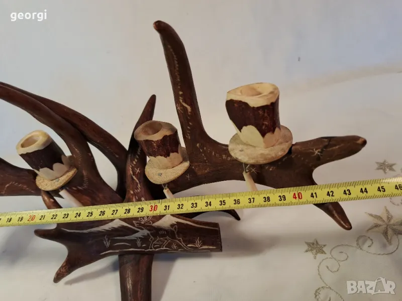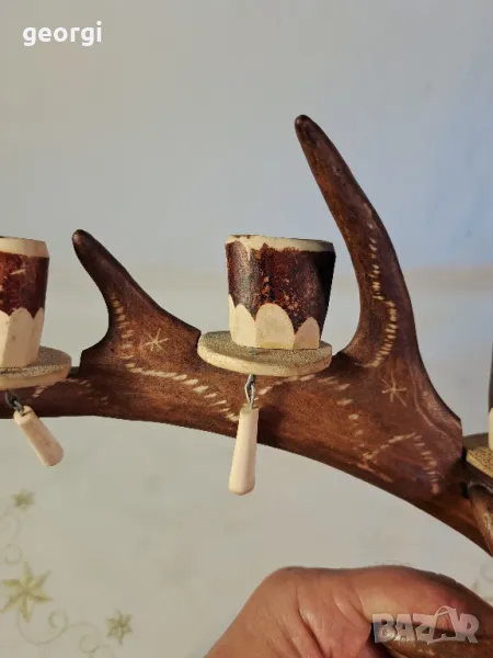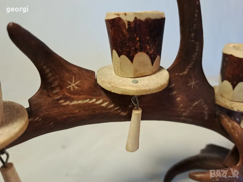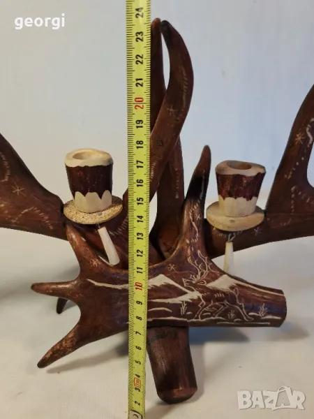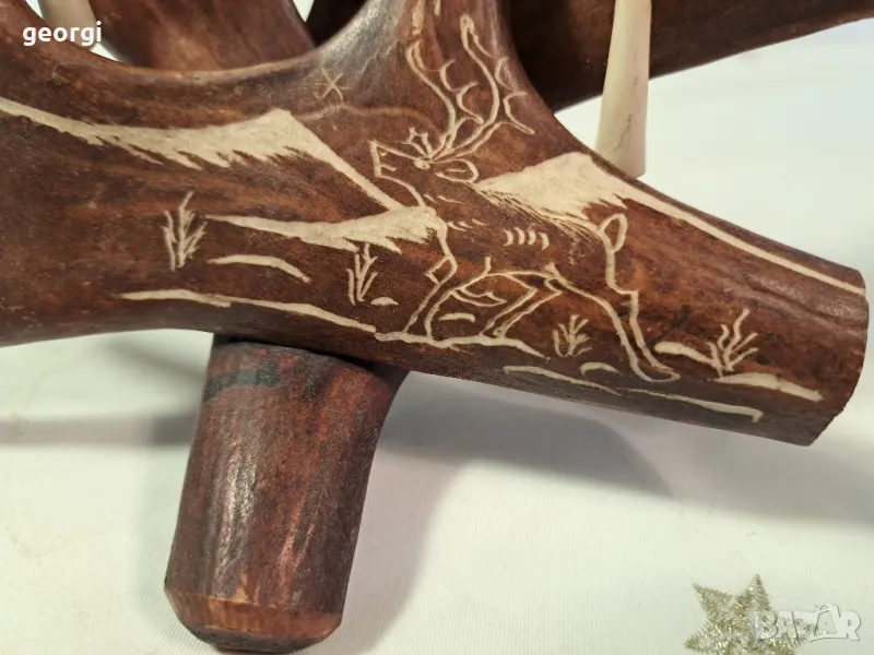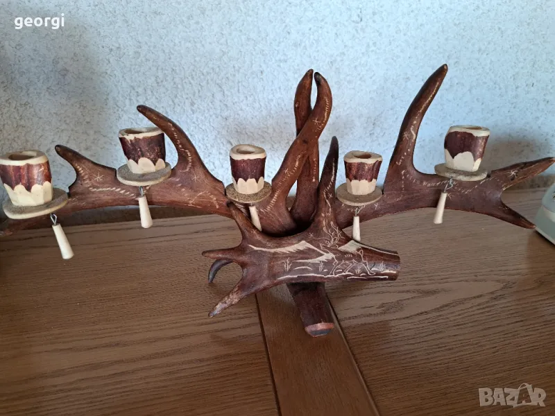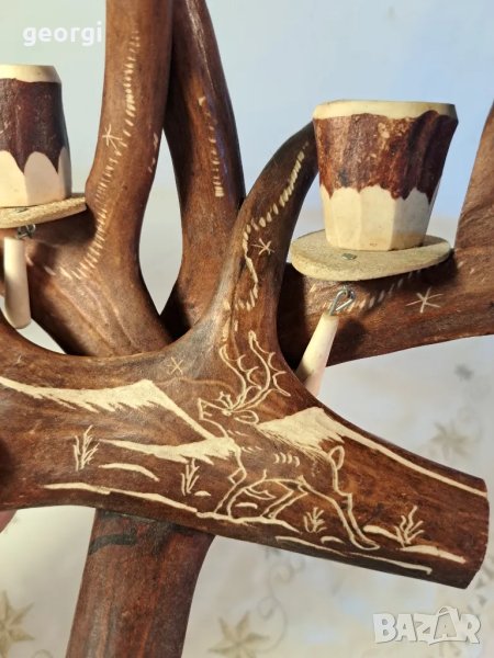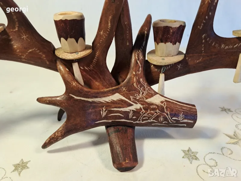 гравиран свещник от еленов рог уникат 25/4 → Обява 50144699