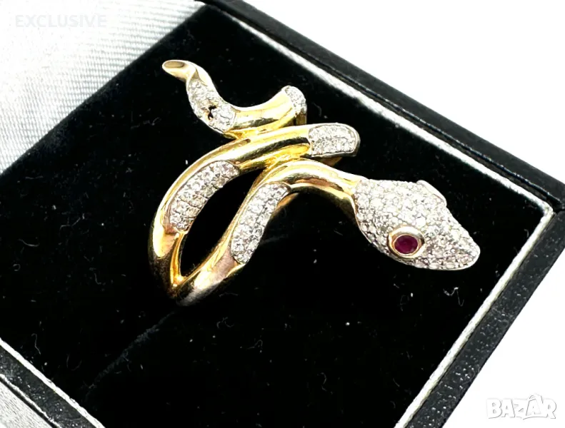 Пръстен змия в сребро и злато с диаманти и очи с рубини! Договаряне! → Обява 50144778