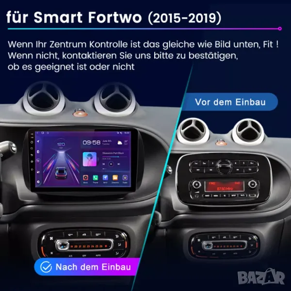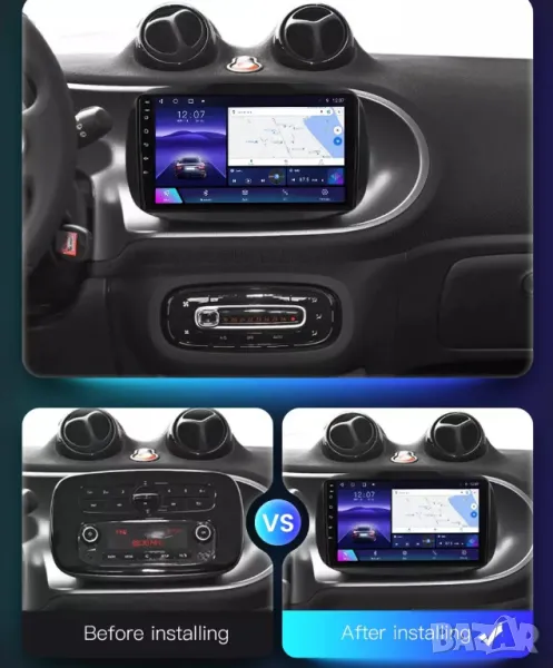 Мултимедия, за Mercedes Benz Smart Forfour Fortwo, 2015-2019, Навигация, с Android, плеър, двоен дин