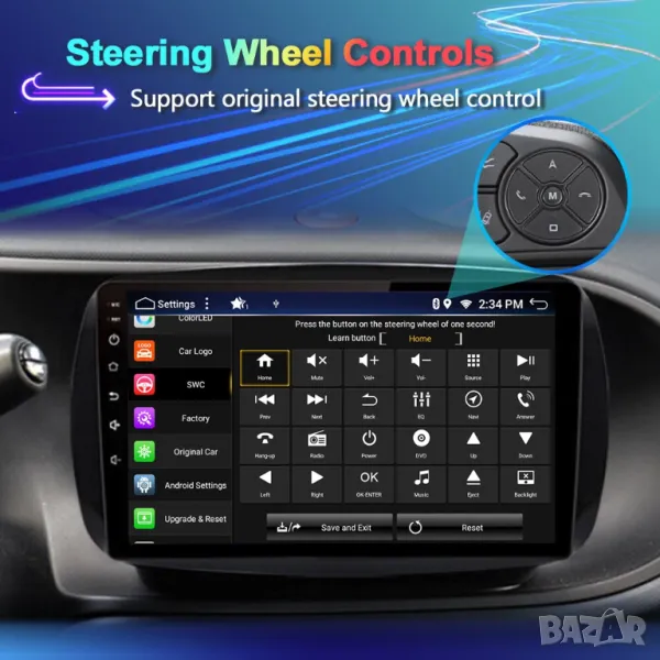 2GB+64GB цена 329.90лв, 4-ядрен процесор, Android Auto, CarPlay, Wi-Fi, RDS, AHD камера