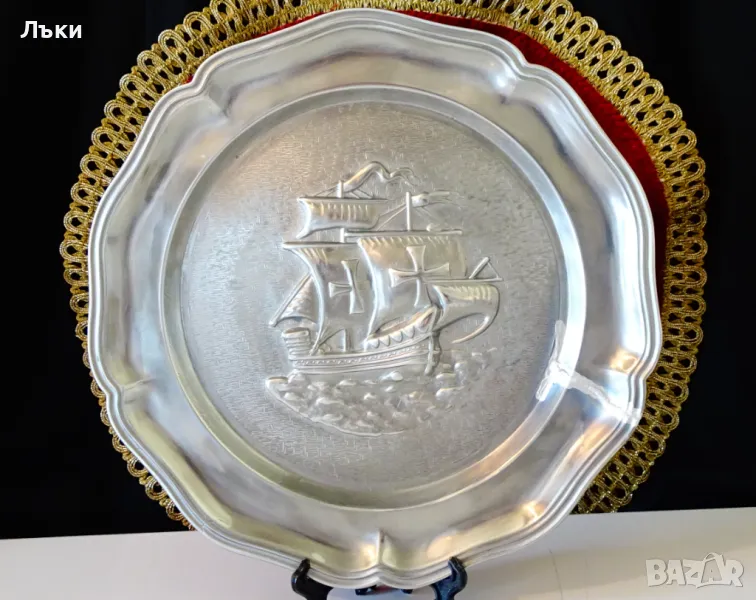 изработка от 95% калай и 5% сребро,маркирана от производителя.В центъра има
