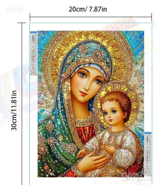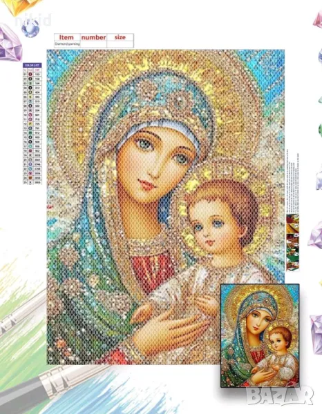 Икона Богородица и Младенеца 5D гоблен диамантен картина мозайка за направа по схема с камъчета