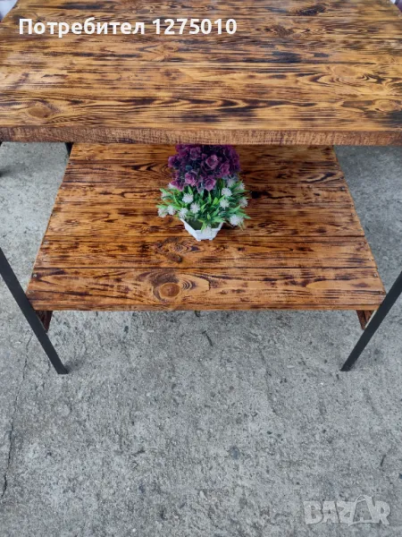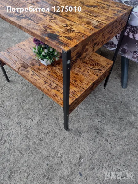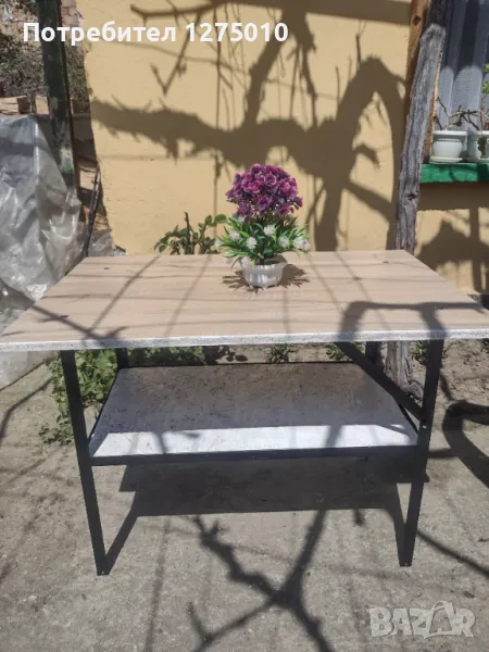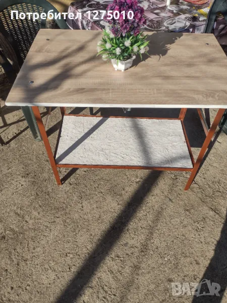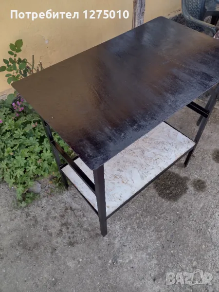 Маса със метални крака и дървен плот на две нива . Може да се ползва .Размери височина 75см. дължина 70/широко 60см. Също може и по поръчка работя .