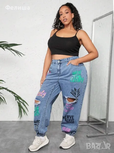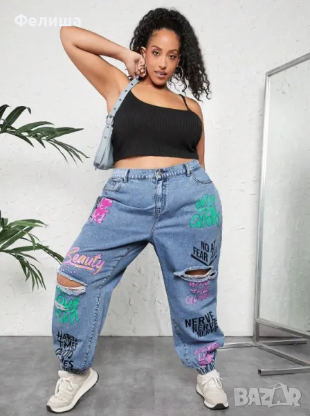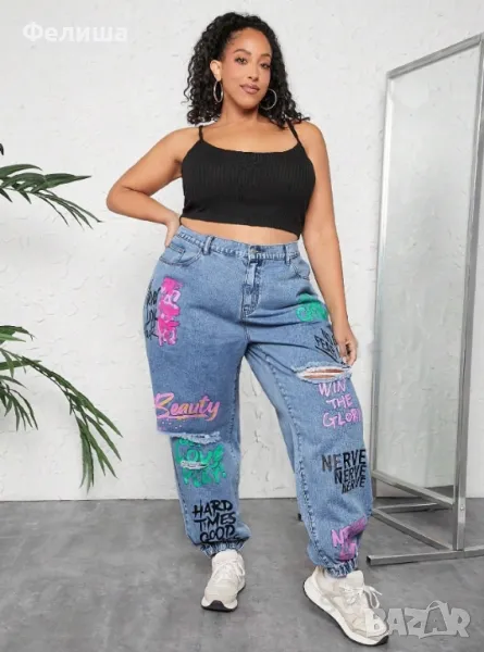 Жестоки Бутикови Дънки ХХЛ / ХХХЛ Размер с Графити Надписи / Еластични / Удобни / Арт Накъсан Дизайн → Обява 50149967