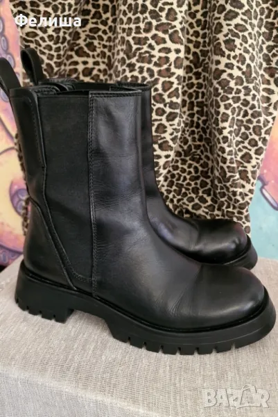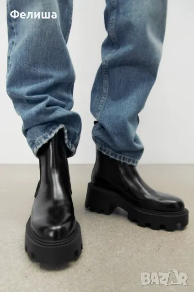 Стилни Ежедневни Черни Боти Естествена Кожа ZARA Chunky Chelsea Колекция → Обява 50150130
