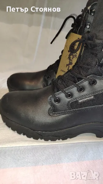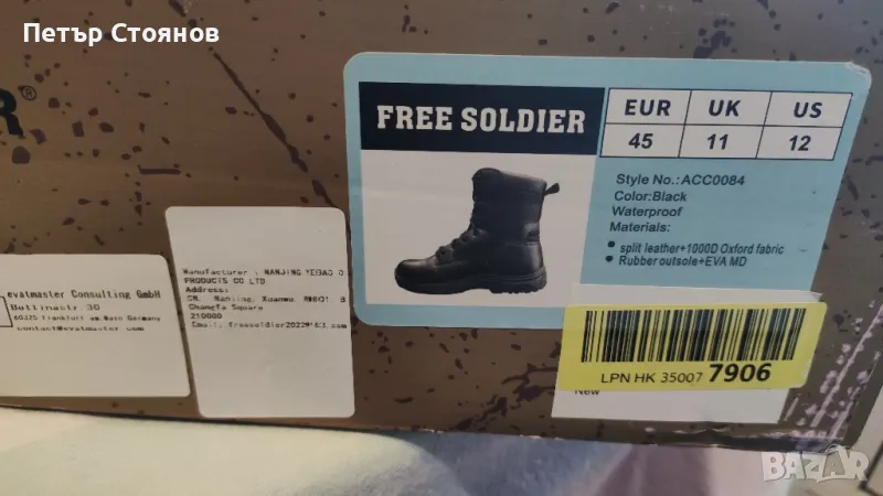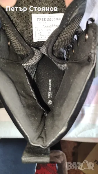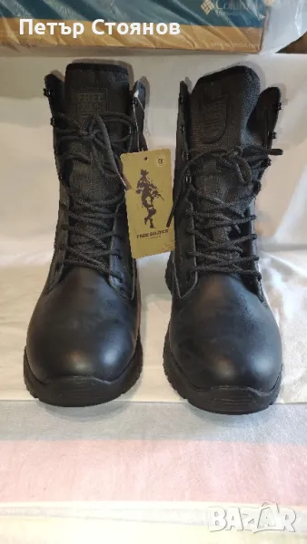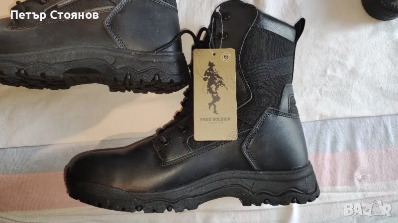 Предлагам леки и удобни мъжки тактически боти на марката Free solder. обувките са чисто нови, в кутия, купени са миналата година. Изработени са от черна естествена кожа, хастарът и стелката са от текстил, а подметката от е полиуретан с EVO пяна. Имат сгрешен размер, който на етикет и подметка е 45, но всъщност отговарят на 43, защото дължината на стелката е 27.5 см. Височината на тока е 4 см, височината на цялата обувка е 24 см. Изпращам с избран от купувача куриер и възможност за преглед и тест.