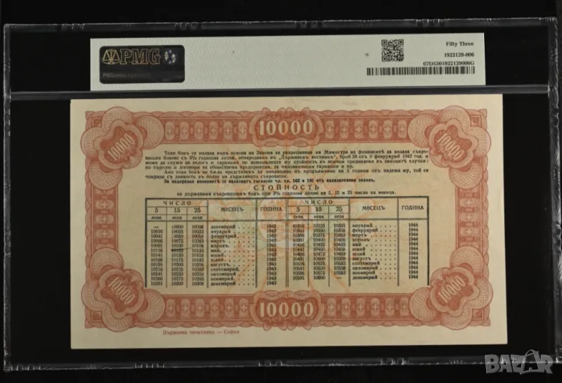 10000 лева 1942 Съкровищен бон  - 2 години падеж AU 53, снимка 1 - Нумизматика и бонистика - 50150370 10000 лева 1942 Съкровищен бон  - 2 години падеж AU 53, снимка 2 - Нумизматика и бонистика - 50150370 1/2