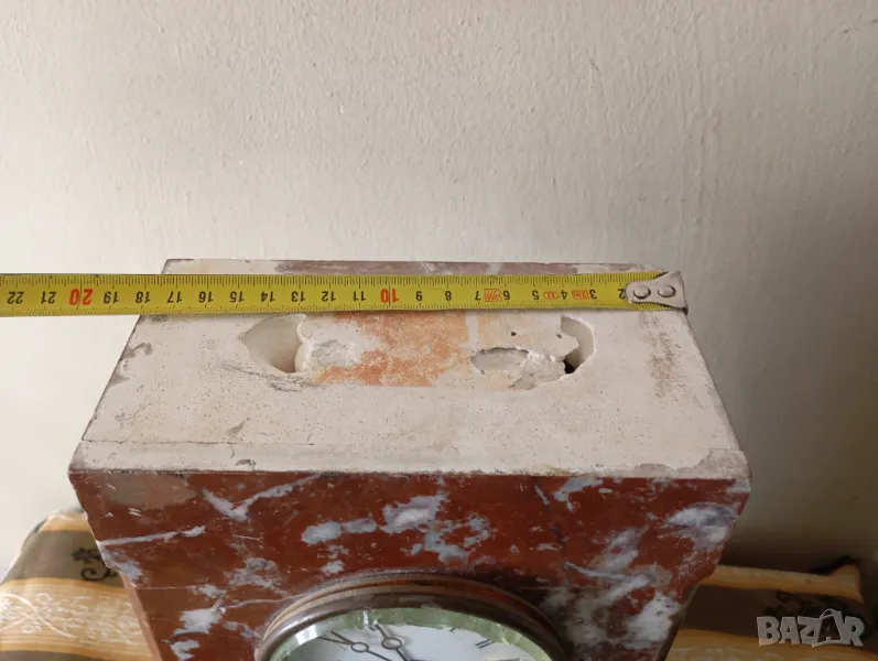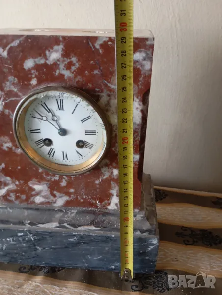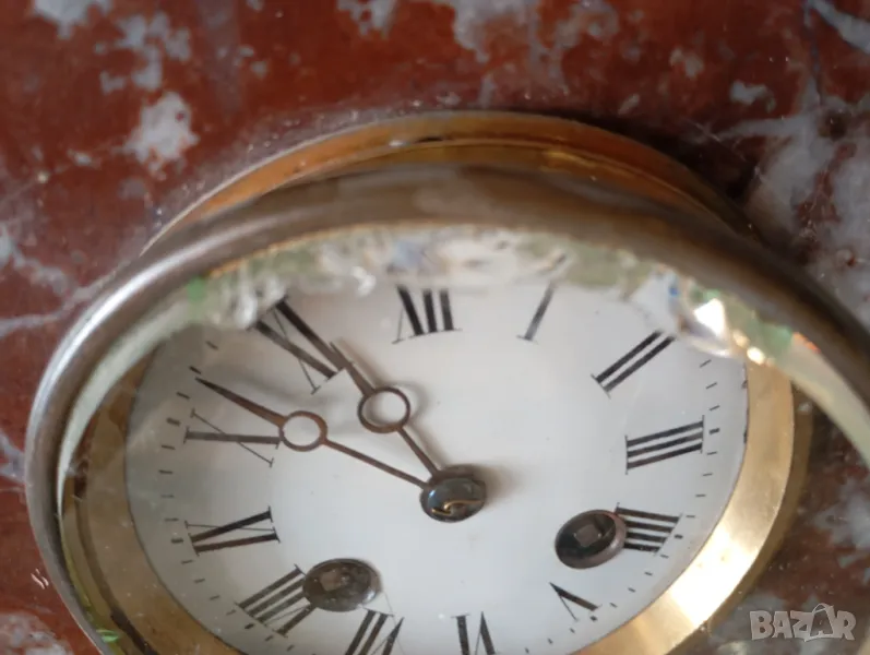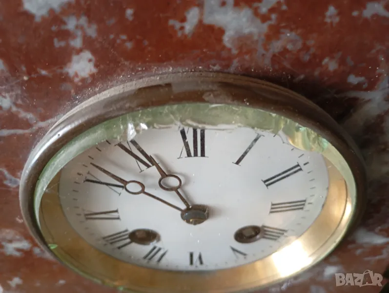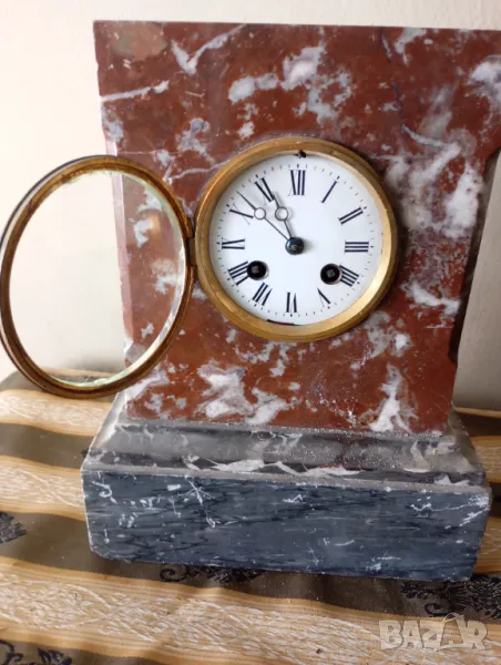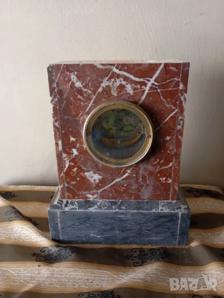 Мраморен корпус,механичен механизъм.Размери,състояние и окомплектованост видни на снимките.